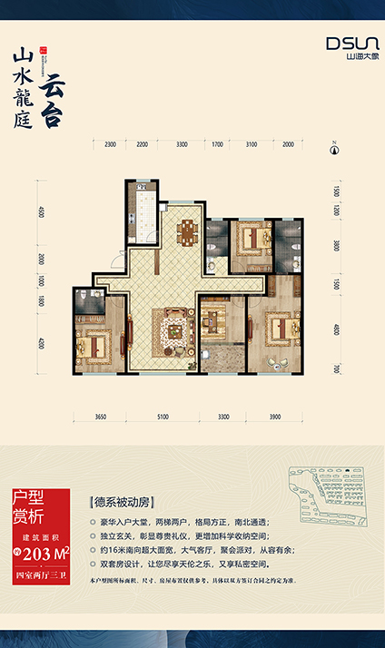 山水龍庭定位為高品質(zhì)住宅區(qū),在擇址上充分從居住環(huán)境、生活便利、發(fā)展?jié)摿?/span>等多方面進(jìn)行考量。項(xiàng)目周邊三山環(huán)繞,天然水系貫穿園區(qū),依山傍水的天然優(yōu)勢,是其他項(xiàng)目所不具備的,在交通方面,項(xiàng)目東側(cè)緊靠北京路,能夠輻射整個(gè)城區(qū),做到離城不離市,并且北京路作為城市發(fā)展的黃金中軸線,商業(yè)辦公、文化旅游、公共服務(wù)等優(yōu)質(zhì)資源也在逐步落地。如今的日照東側(cè)沿海,西側(cè)老城區(qū)資源飽和,開發(fā)困難,南側(cè)重工業(yè)較多,污染嚴(yán)重;新市區(qū)可開發(fā)資源緊缺且地價(jià)房價(jià)高,整個(gè)城市的發(fā)展正在逐漸向北進(jìn)行,無論是城市對外鏈接還是內(nèi)部發(fā)展建設(shè)山水龍庭都占據(jù)著絕佳的地理位置。